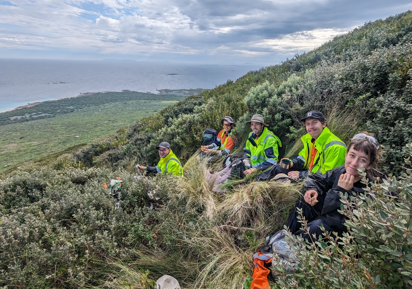 North Barker are proud to support the Friends of the Bass Strait Islands (FOBSI) Wildcare group, to which, through our relationship with Karen Ziegler, we have offered various degrees of in kind assistance over the years, mainly with desktop tasks (e.g. GIS mapping and data management). In July 2023 we stepped up this support with personnel on the ground, sending a dedicated team of North Barker staff and associates out on an exciting nine-day long expedition to Mt Chappell Island (aka Hummocky) – paid by the company and offered as free support of FOBSI, it’s an example of when ecological consulting can be used to pay it back to nature and community groups.