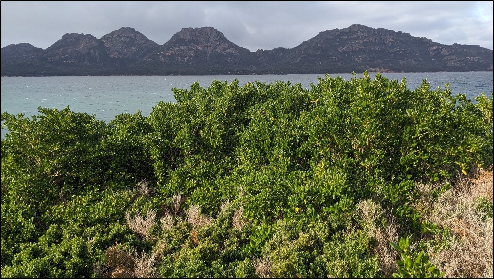 Mirror bush (Coprosma repens), a New Zealand native, with its glossy foliage and vibrant berries, has long been used in Tasmanian gardens as an ornamental. It’s salt-tolerant, hardy and visually appealing, making it a favourite plant of shack owners around the coast. However, these adaptable traits cherished by low maintenance gardeners also equate to a capacity for swift, unchecked spread into natural habitats.