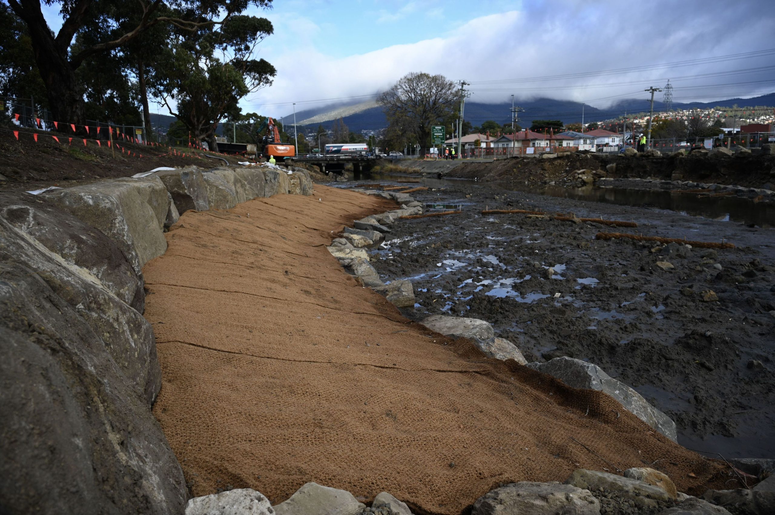 Our team recently completed a key phase of the New Town Rivulet outlet renewal project for the City of Hobart. The project aims to replace ageing concrete embankments with a more natural estuarine environment, improving bank stability, estuarine health, biodiversity, and public amenity.