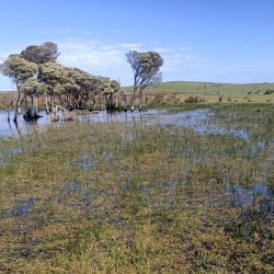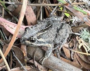 To target frog species, our team use traditional and innovative methods to capture a suite of data and cut down on false negatives – we also optimise detection rates by targeting the breeding season when the frogs are most actively calling, both during the day and at night. Our methods include active on-ground searches, listening for calls, call-back surveys, eDNA, and bioacoustics. In particular we are advancing use of the latter, deploying passive acoustic monitoring devices for weeks and months at time, dramatically increasing survey effort compared to traditional methods.  Analysis of the recordings is undertaken in-house by expert and trained acoustic specialists, to identify detections of the striped marsh frog and its distinctive “tuk” and “whuck” calls – can you pick them in the recording below?
